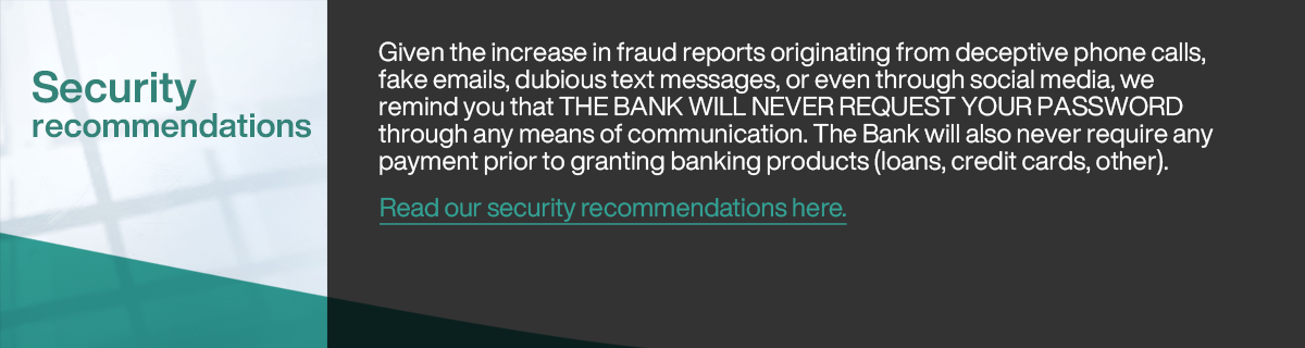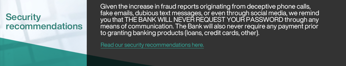 ● We specialize in Private Banking for the professional management of savings and wealth of residents and non-residents, and in Commercial Banking in providing funding solutions and treasury management to local and international companies.