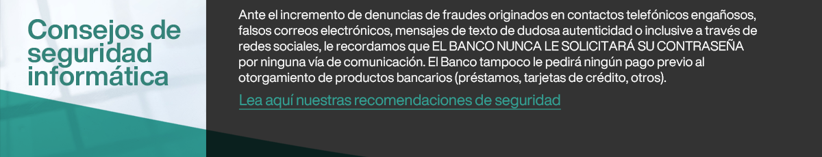 –e-banking flexible con posibilidad de configurar el esquema de firmas que el cliente necesite para la aprobación de pagos y demás operaciones.